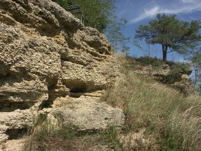 Конгломерат — осадочная горная порода, которая представляет собой сцементированную гальку, с примесью песка. Примечательна не только в качестве носителя водоносного слоя, но и частым содержанием крупных кластеров пуддингового камня, который тоже будет поддерживать водоносный слой.