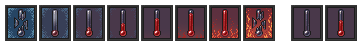 В режиме приключений температура окружения персонажа всегда отображается в правом верхнем углу экрана. Нахождение рядом с объектами и существами, влияющими на температуру (например, рядом с огненным человеком), также изменит показания температуры: